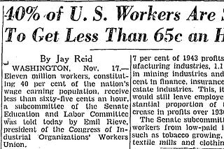Jay's Portfolio: 40% of U.S. Workers Are Said To Get Less Than 65c and Hour
