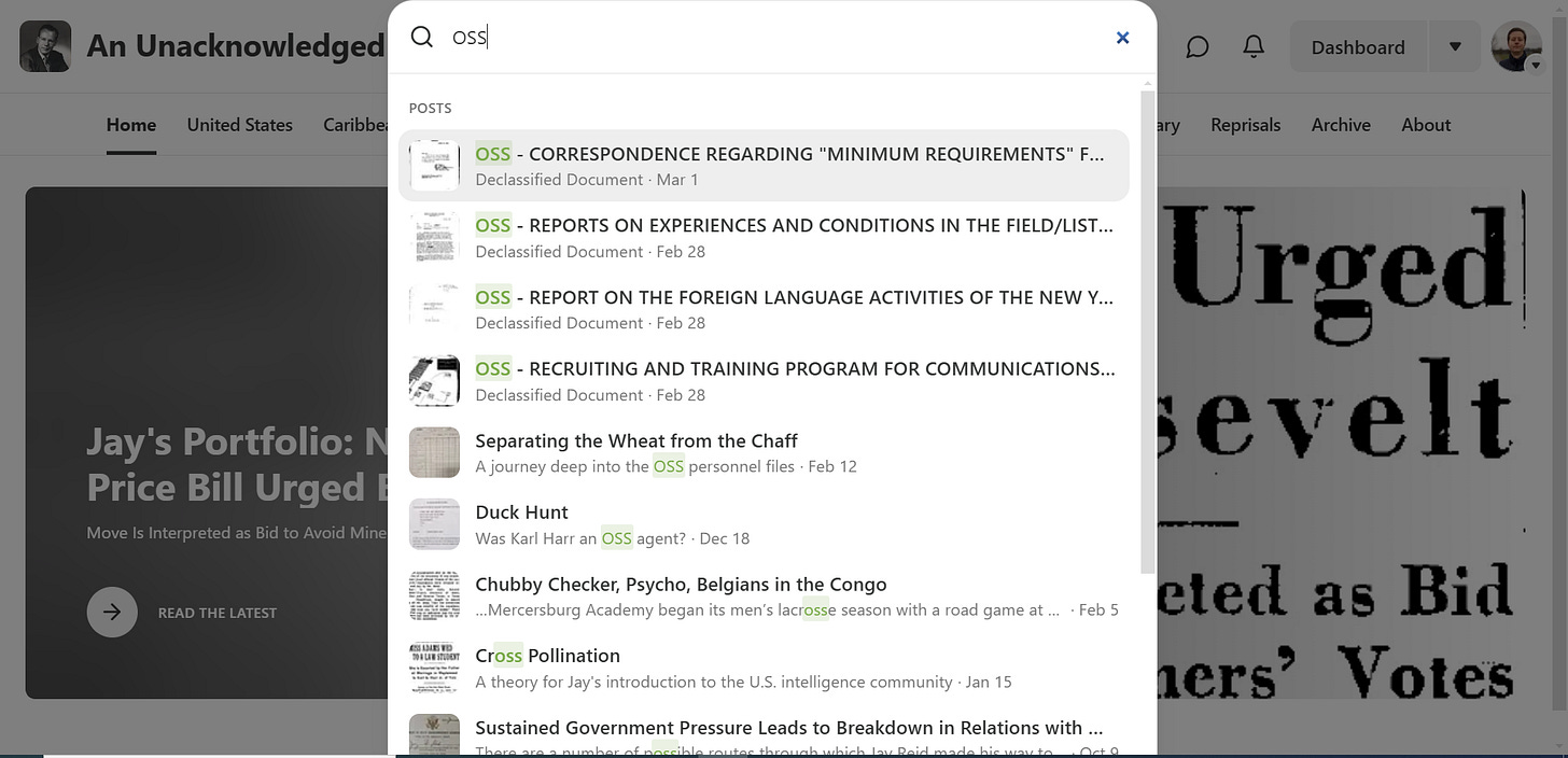 And, most importantly, Substack has a great search function. As I work to connect the dots, I will be able to search for the name of a person or place, pull up the relevant documents, review the summaries, then spend time reviewing only those materials that appear relevant.