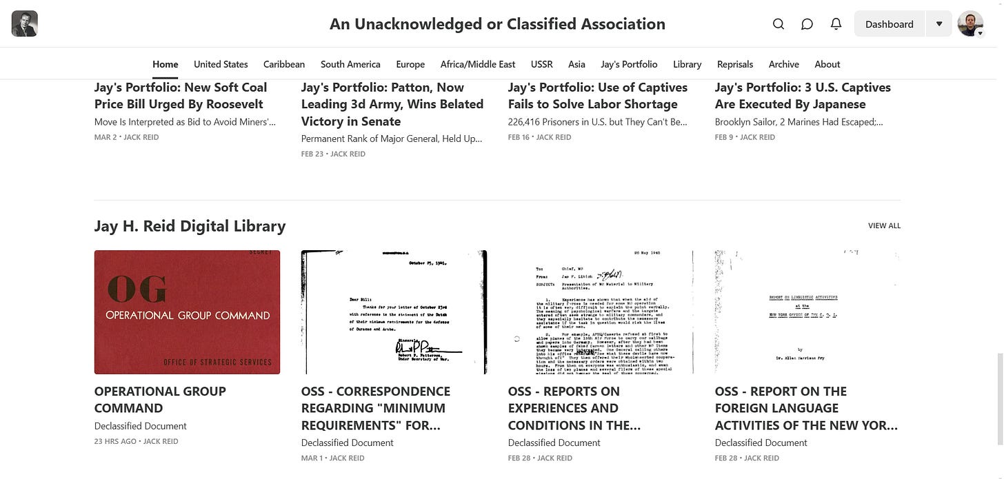Keen observers will note that this newsletter, An Unacknowledged or Classified Association, lives on a website for something called the Jay H. Reid Project.